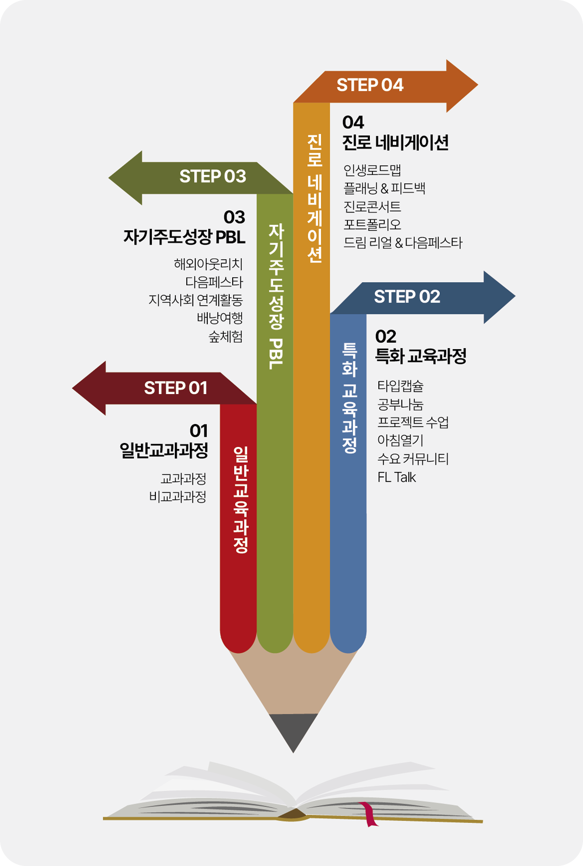 사회가 추구하는 성숙한 인간상은 서로를 인정 (appreciation)하는 과정 속에서 형성된다는 Whitehead(1861-1947, 영국 수학자/철학자) 과정철학(Process Philosophy)를 학문적 배경으로 교육과정을 계발하였습니다.