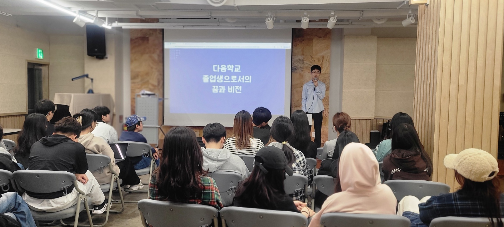 대안교육기관 다음학교는 기본 교과 외에 필수 및 선택 과목으로 체육, 음악, 미술, 그래픽디자인, 댄스 등 예체능 수업과 미래 교육을 위한 AI, 로봇, 컴퓨터, 중국어 수업 등을 하고 있습니다.